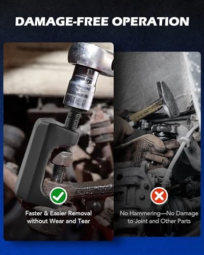 - (2) HARDENED ALLOY CONSTRUCTION: Extraordinarily tough and durable alloy means these tools can stand up to the toughest jobs. This front end service tool kit can remove the most stubborn ball joints, tie rod ends, and pitman arms.