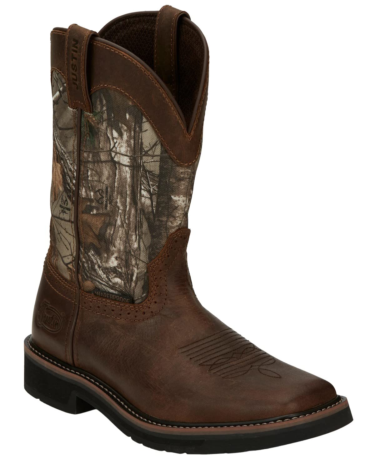- Introducing the Justin Switch 11" Men's Work Boot, a testament to over 140 years of craftsmanship and dedication to excellence in footwear. Designed for those who tackle the toughest industrial and construction environments, this boot combines the legacy of Western durability with modern innovation. The composite toe provides robust protection without the weight of steel, offering an optimal balance of safety and comfort for long workdays. Crafted by skilled artisans using the finest leathers, each pair is a masterpiece of resilience and style, echoing the rich heritage of Justin Boots. The slip-resistant sole ensures a firm grip on any surface, making it the ideal choice for navigating challenging terrains with confidence. From the oil rig to the construction site, this industrial and construction boot stands as a symbol of rugged dependability, ready to support every step of your demanding journey. Slip into a pair of Justin Switch boots and embrace the enduring spirit of Western craftsmanship that has been trusted by generations.