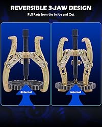 UNIVERSAL REMOVAL TOOLS: This 3 jaw puller set by Orion Motor Tech fits your wrench or ratchet to work as a gear puller, bearing puller, crank pulley puller, flywheel puller and more, letting you easily handle worn or broken parts BETTER TOGETHER: Our bearing puller set includes four puller sizes, offering maximum spreads of 3", 4", 6", and 8" and reaches of 4.3", 5", 7.3", and 9.2" to cover most applications 3 JAW DESIGN: These power steering pulley pullers bite tightly onto your components with their reinforced jaws and distribute even pulling force to remove parts without causing damage REVERSIBLE JAWS: Each pulley removal tool can be reversed to pull parts from either the inside or outside, with the 6" and 8" gear puller provide 4 configurations for a sure grip thanks to their dual fixing holes TOOLS FOR MECHANICS: Drop-forged and heat-treated carbon steel builds with corrosion proof coatings ensure these pullers last for resilient service with unrivaled strength and durability