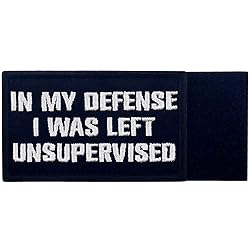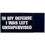 Tactical in My Defense I was Left Unsupervised Patch Embroidered Funny Morale Applique Fastener Hook & Loop Emblem, White & Black