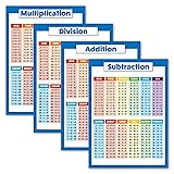- 4 Pack - Laminated Math Poster Set - Multiplication Table Poster, Division, Subtraction, Addition (Laminated, 18" x 24")