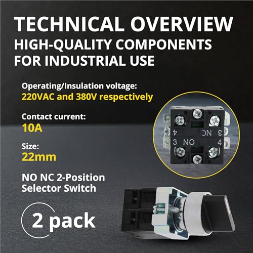 - Electric Switch - Shopcorp presents a sturdy yet lightweight selector switch, featuring a two-position self-lock with a 22mm mounting hole for secure installation. This versatile switch can be configured as either NO or NC contact, made with high-grade plastic, metal, and electronic components. It adheres to the GB/T14048.5 standard, ensuring reliable performance without the need for batteries.