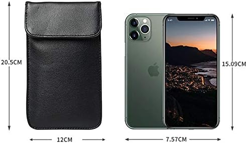 Protects chip technology "smart-cards" from hackers' RFID readers in the range of 10 MHz - 30 GHz Block Cell Phone Signal - If you don't want to answer the phone, you can put the phone in the silver layer pocket of the bag and close it, then the phone will be disconnected; this bag can also block Cell Phone GPS Signal to prevent tracking, protect your privacy Block Car-key FOB Signal - Keep your car's security system from getting hacked Material:Premium Leather+EMF Shielding Fabric 1 x RFID Signal Blocking Bag Dimensions : 12x20cm Color:Black