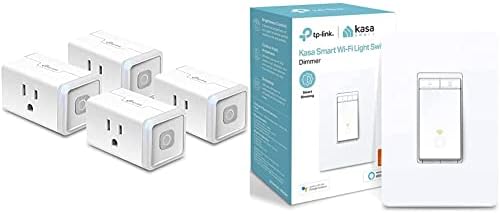 Kasa Smart Plug by TP-Link, Smart Home WiFi Outlet 12 Amp, UL Certified, 4-Pack & Dimmer Switch by TP-Link, Single Pole, Needs Neutral Wire,WiFi Light Switch for LED Lights,UL Certified, 1-Pack