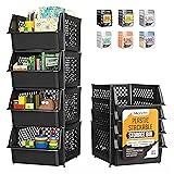 [See Everything Instantly, Stay Effortlessly Organized] No more digging through clutter. These pantry storage bins are designed for quick visibility and easy access, making pantry organization simple and stress free. The open front design lets you spot and grab items instantly, ideal for toys, tools, toiletries, and garage essentials as well. Set of 4. Single bin size: 11.5 x 14.5 x 7 Inches and a set of 4 has dimensions of 11.5 x 14.5 x 27.5 Inches. [Maximize Pantry Space with Smart Vertical Storage] Create clean, efficient organization and storage in your pantry by stacking upward instead of spreading items across shelves. These open front stackable organizer bins keep snacks, canned goods, and dry food easy to access while saving valuable shelf space. Nestable when not in use, they help maintain a clutter free pantry without wasting room. [Quick Pantry Access Without Unstacking] Simplify kitchen organization by reaching snacks, spices, and dry goods instantly, even when bins are stacked. These smart storage organizer bins feature an open front design that lets you grab what you need without removing the bin on top, keeping your pantry neat, efficient, and frustration free. [Protect Pantry Items with Breathable Storage] These open front kitchen organizers and storage bins feature ventilated sides that allow airflow, preventing moisture buildup and keeping snacks, canned goods, and dry ingredients fresh. The breathable design ensures your pantry stays clean, dry, and well organized for easy access every day. [Durable Pantry Storage That Stays Stable] These stackable storage organizing bins are crafted from sturdy plastic to hold heavy pantry items without warping or tipping. The open-front design makes accessing snacks, canned goods, and dry ingredients effortless, while ensuring long lasting, reliable organization for your kitchen shelves. [Perfect Gift for Organized Homes] These plastic bins for organization make a thoughtful and practical gift for parents, new homeowners, or anyone who loves a tidy kitchen. Ideal for housewarming, baby showers, holidays, or birthdays, they help keep snacks, pantry staples, and kitchen essentials neatly accessible. Sleek, durable, and versatile, they combine style and function for everyday kitchen organization that any recipient will appreciate.