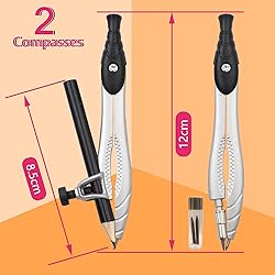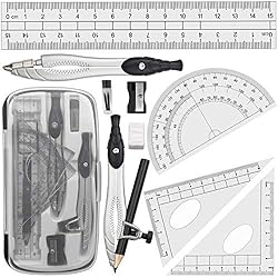 Complete Geometry Kit: comes ready-to-use tools including 2 durable geometry compasses for circles and arcs, a 180-degree protractor, 2 set squares (30°/60° and 45°/90° triangles), and a straight edge ruler; everything students need for math class, engineering drawing, and technical drafting. 2 Versatile Geometry Compasses of different types, a standard drawing compass and a quick-adjust compass - giving students the handy tool for math assignment. The sturdy construction ensures smooth circles and arcs Starter maths set and back-to-school supply for middle school, high school, and college students. The classic black color design is suitable for boys and girls. Portable & Organized: The compact carry case keeps all items well stored, compact and handy, making it easy for boys and girls to transport between home and school
