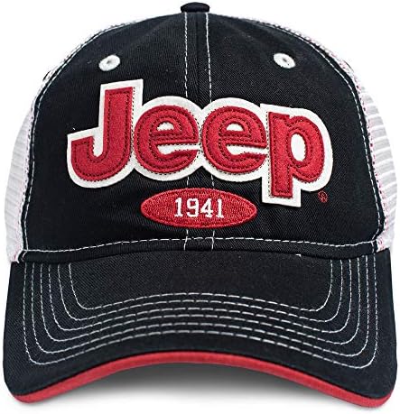 Jeep Black Hat - Felt Appliqué Cap for Men & Women - 1941 Embroidered Logo, Adjustable Snapback, Mesh Trucker Cap, Off-Road Merchandise, Officially Licensed