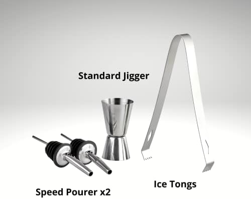 - Everything You Need: The ACCOUTREMENT complete bar shaker set includes all the accessories you need, such as 2 cocktail shakers, cocktail strainer, muddler, jigger, stirring spoon, ice tongs, and 2 pourers.