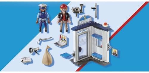 Starter Packs: ¡la introducción perfecta a los mundos temáticos de PLAYMOBIL! El valiente policía ha atrapado al ladrón y lo lleva a la comisaría. Pero de repente, el criminal escapa por el agujero de la pared, ¡y la persecución comienza de nuevo! El juego incluye dos figuras, construcción de estación, palanca y otros accesorios. Combina este set con el Starter Pack Police Chase de PLAYMOBIL (#70502, se vende por separado) para una acción policial aún mayor. Dimensiones del edificio: 4.1 x 4.7 x 7.3 in (LxWxH). Recomendado para niños de 3 años en adelante. Advertencia. Peligro de asfixia. Piezas pequeñas. No apto para niños menores de 3 años.