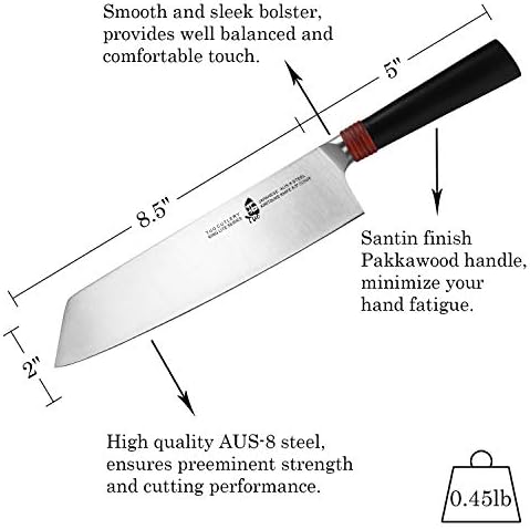 TUO Kiritsuke Chef Knife 8.5 pulgadas - Cuchillo Profesional Japonés para Verduras y Frutas de Serie RING LITE con Mango de Pakkawood - Acero AUS-8 - Caja de Regalo