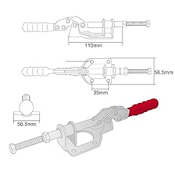 【4 Pack 302-F Toggle Clamps】 GH-302F Model, Holding Capacity:136 kg/ 300 lbs Plunger Stroke: 32mm/ 1.26", Handle Opens: 180°. 【Vertical & Horizontal Use】Quick release push pull toggle clamp help to securely grip your workpiece in a vertical or horizontal position. 【3 Heavy Duty Compositions】These quick release toggle clamp consists of a flange base plate for installing the toggle clamp firmly, adjustable rubber pressure tip for flexible clamping, and ergonomic ribbed-plastic handle for safe and comfortable operation. 【Soild Materials】Made of zinc-plated, cold-rolled carbon steel that resists corrosion, be used for a longer time. 【Ideal for Clamping Jig】 Ideal for welding, moulding, jointer jig for table saws, cabinet cases or router tables, fixtures, assemblies and movable bases.