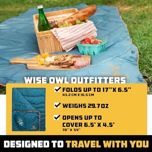 Wise Owl Outfitters Manta de Camping al Aire Libre – Manta Inflada Ligera y Compacta para Mochilear, Senderismo y Viajes – Manta Impermeable y Cálida para Camping en Clima Frío