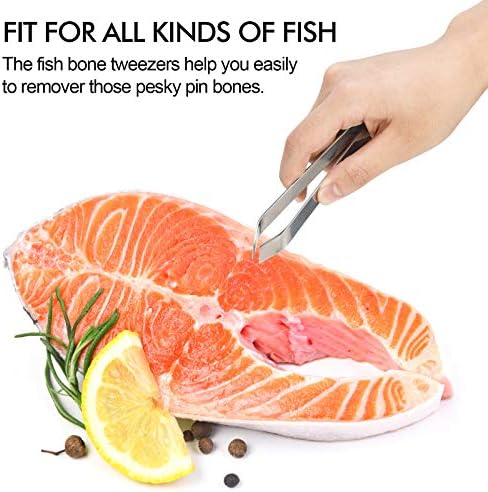 - Deboning & Plucking - If you are still troubled by stripping fishbone, our tweezers can perfectly solve your trouble, help you remove pin bones from salmon and trout bone removal, and small feathers from packs of chicken pieces, with a decent grip.