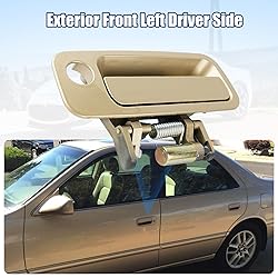 Outside front driver side door handle replacement - Gold color Outer door handles replacement for 1997 1998 1999 2000 2001 Toyota Camry CE, LE, XLE Made from premium quality material, easy installation and perfect fit Replace OE Part Number: 69220-AA010 TO1310114 69220-AA010 79426 [Customer Service] -2-Year-Warranty. Please feel free to contact our customer service team for any concerns or problems