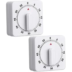 EASY OPERATION:Set your time effortlessly with this 60 minute kitchen timer; simply turn clockwise to zero, then counterclockwise to your desired time, and hear a loud alarm when done. Ideal as a cooking timer or study timer for managing tasks efficiently COMPACT DESIGN:Measuring just 2.4 x 2.4 inches, this lightweight mechanical timer requires no batteries, ensuring portability and reliability; Use this visual timer anywhere as a handy kitchen timer or exercise timer without worrying about power issues LOUD ALARM:Never miss a deadline with the clear, clangorous bell of this countdown timer; Designed to alert you even in noisy environments, making it a superior cooking timer or homework timer for focused time management PRECISE TIME MANAGEMENT:Visualize time passing with the accurate dial of this 60 minute timer; Enhance productivity during cooking or workouts with this visual timer, helping you stay on track as an effective exercise timer or study aid VERSATILE USE:Suitable for various settings, this 2 pack mechanical timer is excellent for kitchen tasks, fitness routines, or focused study sessions; Keep one as a kitchen timer and another as a study timer to streamline daily activities