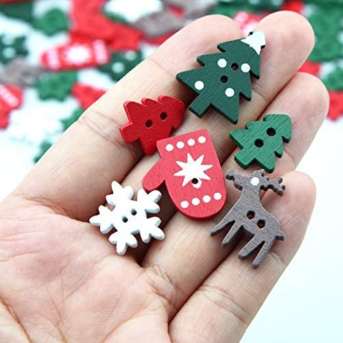 - Quantity You Receive: Package includes 200pcs Christmas wooden buttons, which contains 100pcs mixed patterns, snowflake elk gloves tree, each pattern quantity at radom, and 100pcs red and green Christmas trees, each color 50pcs.