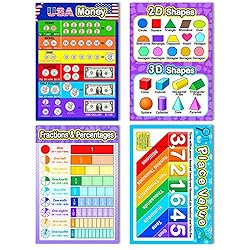 12 Different math posters: multiplication chart, division, addition, subtraction, numbers, fractions and percentages, math keywords, types of graphs, time and 3D shapes, etc. Durable material: educational posters are made of 250 gsm cardstock, and double sides covered with quality PET film will make them durable, waterproof, tear resistant and reusable, also the marks made by water-based markers on them can be erased so you could illustrate on the content of posters for clearer expression Delightful colors and illustration: kid learning posters are designed with beautiful colors and graphic elements, which will grip your children's attention and the vivid pictures will arouse their curiosity; Each size is 40 x 28 cm/ 16 x 11 inches, suitable size for kids Flat ship and easy to use: we do not roll our elementary math posters in tubes like many of others, and they are ready to mount with glue point dot which comes with package, you can also hang them on the wall through the hole of plastic bag Practical gifts for children and kids: these delightful colors preschool education posters are nice for home schooling, preschool, kindergarten, elementary and middle school, and our posters make learning more fun and grip your toddler's attention and the vivid pictures will stimulate their learning interests