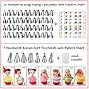 - 【55 Numbered Piping Tips & Pattern Chart】: Each icing piping tip has a number.On the Pattern Chart you can see the result of the various piping tips.This tool makes it very easy to select the perfect nozzle for your cake decorations.Icing pattern with Closed Star, Open Star, French, Rose, Round, Plain, Leaf, Petal.Each of the tips creates a different design for all types of great creations.