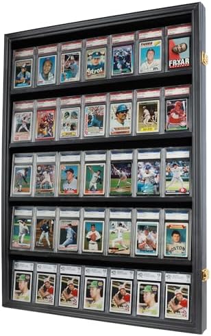 Lockable 35 Graded Sports Card Display Case, for Football, Baseball, Basketball, Hockey Cards (Vertical-Black Finish)