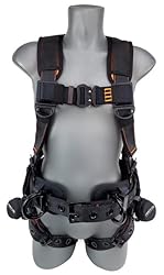 Back, shoulder and waist pads are of moisture wicking material for better breathability and a more comfortable fit to help reduce user fatigue and heat exhaustion Made up of high tenacity black polyester webbing and safety orange stitching, makes it easier to do stitching safety inspection because of the color contrasting The harness is the lightest in its kind, as it made up completely of aluminum hardware Harness includes a back web loop attachment, which is used to place a twin SRL and conveniently leaves the back d-ring for rescue or other option of SRL when web loop not being used Convenient reinforced belt and rigid pad supports tool belts without harness falling or sagging Harness features integrated suspension trauma straps to avoid suspension trauma if subject to a fall