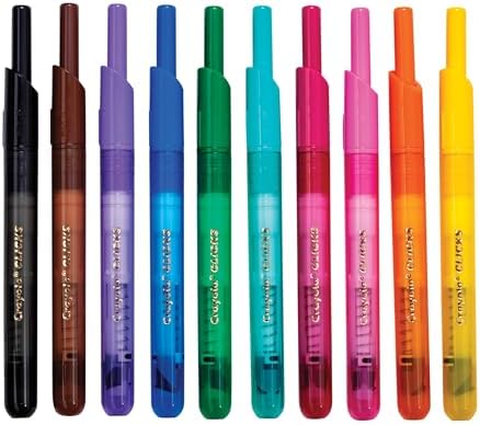 Marcadores Crayola Clicks de punta retráctil (10und), Regalos de media temporada para niños y pequeños, Conjunto de marcadores de arte lavables con punta cónica, Suministros para libros de colorear, Sin secado, 3+