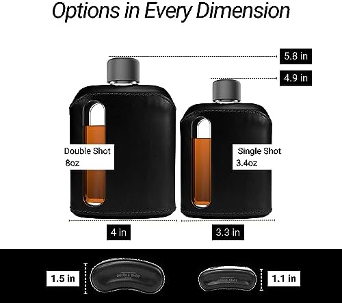 • CONVENIENT EASY POUR WINDOW: Designed for the modern drinker, this glass hip flask for men & women features a pour window, ensuring you never overfill. The special vented silicone funnel helps prevent spills and is lightweight and easy to store. It's perfect as an on-the-go travel flask partner and ideal for those seeking a pocket hip flask or a hip flask hidden from metal detectors.