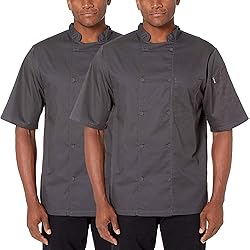 PACK OF 2 - Short Sleeve Chef Coat / Jacket with Mesh Vent Inlay and Cloth Covered Buttons Left Patch Pocket Thermometer Pocket Stain Resistant Finish and Durable Construction 5 oz Fine Line Baby Twill