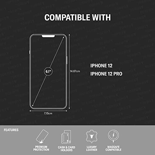 - PREMIUM LEATHER - The TORRO premium leather flip case for iPhone 12 and iPhone 12 Pro is handcrafted from black napa leather with contrasting red stitching and striking TORRO bull's head insignia, a fine grain soft leather, providing the perfect balance of being tactile yet robust.