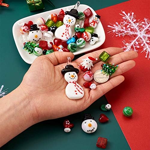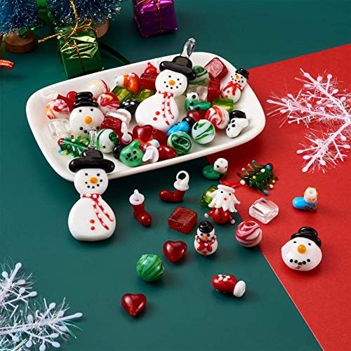 KISSITTY 55pcs/Box Lampwork Glass Beads Mixed Christmas Theme Snowman Christmas Tree Crystal Beads for Jewelry Making Christmas Decoration