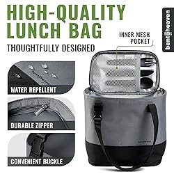 Bentoheaven Insulated Lunch Tote for Work - Durable Materials, Variable Strap/Handle, Wide Opening - Cooler Lunch Bag for Women & Men - Fits all major Bento Lunch Boxes and Other Containers (Gray)