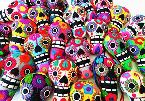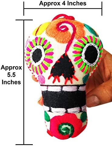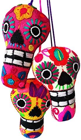 3 Pack (Assorted) Sugar Skull Ornaments for Tree, Day of The Dead Decorations, Calaveritas de Dia de Muertos Ornaments, Cloth Calaveras de Azucar Mexican Christmas Ornaments, Calaveras Decoracion