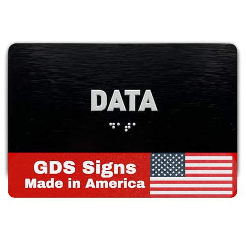 Data Sign by GDS - ADA Compliant, Raised Icons & Grade 2 Braille - With Adhesive Strips for Easy Installation - Utility Signs for Offices, Businesses - 7" W x 4" H (Brushed Black) - Made in USA