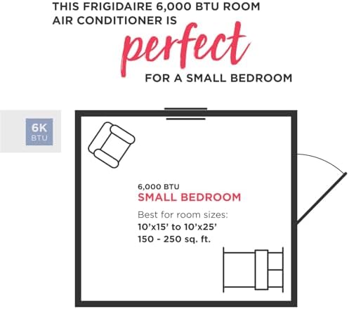 The Frigidaire 6,000 BTU window air conditioner allows you to enjoy optimum circulation and cooling with directional airflow and three different fan speeds. Designed for rooms up to 250 square feet, this air conditioner window unit is perfect for apartments, offices, dorm rooms, or any small sized space. Use the 24-hour programmable timer to preset the unit to turn on and off in half hour increments, or whenever you want, so that you can maintain optimal comfort while at home. Enjoy maximum comfort and quiet operation throughout the evening hours with sleep mode, where the temperature gradually increases a few degrees over the course of the evening. Our easy-to-clean washable dust filter captures dust from the air and helps keep your air conditioner working efficiently, and you'll know when it's time to clean with the Clean Filter Alert. Precisely control the temperature and fan speed from across the room and remain comfortable at all times with a thermostat located on your air conditioner's remote control, which precisely maintains the preset room temperature. These convenient features combine to give you a dependable air conditioner that will keep your home cool and comfortable for many seasons.