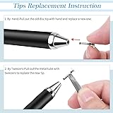 【Brand New Retractable Stylus Pen】Simply press the top of the pen to eject and hide the disc tip, makes it more convenient and easier to use, and better protects the disc tip from damage during daily use and travel. 【Super Sensitivity & Accuracy】 The disc tip offers better flexibility and accuracy without lag and perfect for drawing, designing, note taking, sketching, signing, writing on your touch screen tablets and smart phones. Capacitive-only; no resistive support(like devices require firm pressing) 【Universal Compatibility】The stylus pen is universal, compatible with iPad, iPhone, Android Tablets, Android Phones, Samsung Galaxy, Smart phones and other capacitive touch screens devices. 【Replaceable Pen Tip】The disc tip is replaceable, replace can be done within seconds by hand which effectively extend stylus lifetime. NOTE: Please don't remove the clear plastic disc,or the tip won't work normally. 【Package Includes】Package includes 1pc stylus pen, 3 disc tips, 1 product manual. Comes with an elegant box, which is a great choice for a Thanksgiving Day, Christmas festival gift.