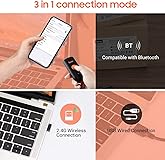 【IP66 Waterproof Dustproof Mini Pocket 2D Scanner】Just bring this scanner with you. Anytime you want to collect data, just connect it with your device via Bluetooth or use the storage mode. 【Package Includes】Barcode Scanner x1, USB Cable x1, Dongle x1, User Manual x1. 【Waterproof Dustproof Silicone Port Plug】Newly designed waterproof and dustproof silicone port plug on marketplace, it enables better performance of the scanner in every working conditions. The silicone button on the scanner body enables every soft and smooth scanning experience. 【3-in-1 Connection Ways】This scanner works with Bluetooth, 2.4GHz wireless and USB 2.0 wired mode. The transmission distance can be 656ft in barrier free environment and 98 ft in an environment with obstacles using a 2.4G USB dongle. In addition, it is also compatible with various operating systems, such as windows 11/10/8/7/xp, Mac OS, iOS, android, linux.(Note: Not Compatible with Square) 【Vibration Alert】: When you need a quiet working environment, just turn the volume off and the vibration function will let you know if a barcode is detected. 【1D 2D QR Scanner】:Supports Both Digital and Printed 1D 2D QR Bar Code Symbologies: 1D Decode Capability: Codabar, Code 11, Code93, MSI, Code 128, UCC/EAN-128, Code 39, EAN-8, EAN-13, UPC-A, ISBN, Industrial 25, Interleaved 25, Standard 25, 2/5 Matrix 2D Decode Capability: QR, PDF417, Data Matrix, Aztec code, Maxi Code.