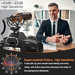 - 【Micrófono de cañón condensador super cardioide】Adoptando el patrón direccional super cardioide, el micrófono de cañón Comica VM20 elimina eficazmente el ruido de fondo, graba el sonido objetivo de manera precisa y clara, proporcionándole mejores resultados de grabación.