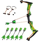 ULTIMATE EXCITEMENT: With a 250ft range, the Zing Hyperstrike Bow packs excitement and performance of a recurve bow into a kid-sized package! Perfect for outdoor play and yard games. FUN FOR EVERYONE: Super durable, low-profile power bungee cords are easy to pull back, providing lots of power and are easy to replace! Works for both left-hand and right-hand use. QUICK RELOAD: Exclusive Loop & Launch Technology provides a quick reload so that every moment is filled with action! PLAY SAFE: Foam-tipped arrows ensure that safety isn't sacrificed in the pursuit of fun, whether playing alone or with an archery target! The embedded whistle allows you to hear the arrows screaming through the air as they zoom towards your target SET INCLUDES: 1 Clear Green Bow, 6 Green Zonic Whistle Arrows and 1 Set of Orange Bungee