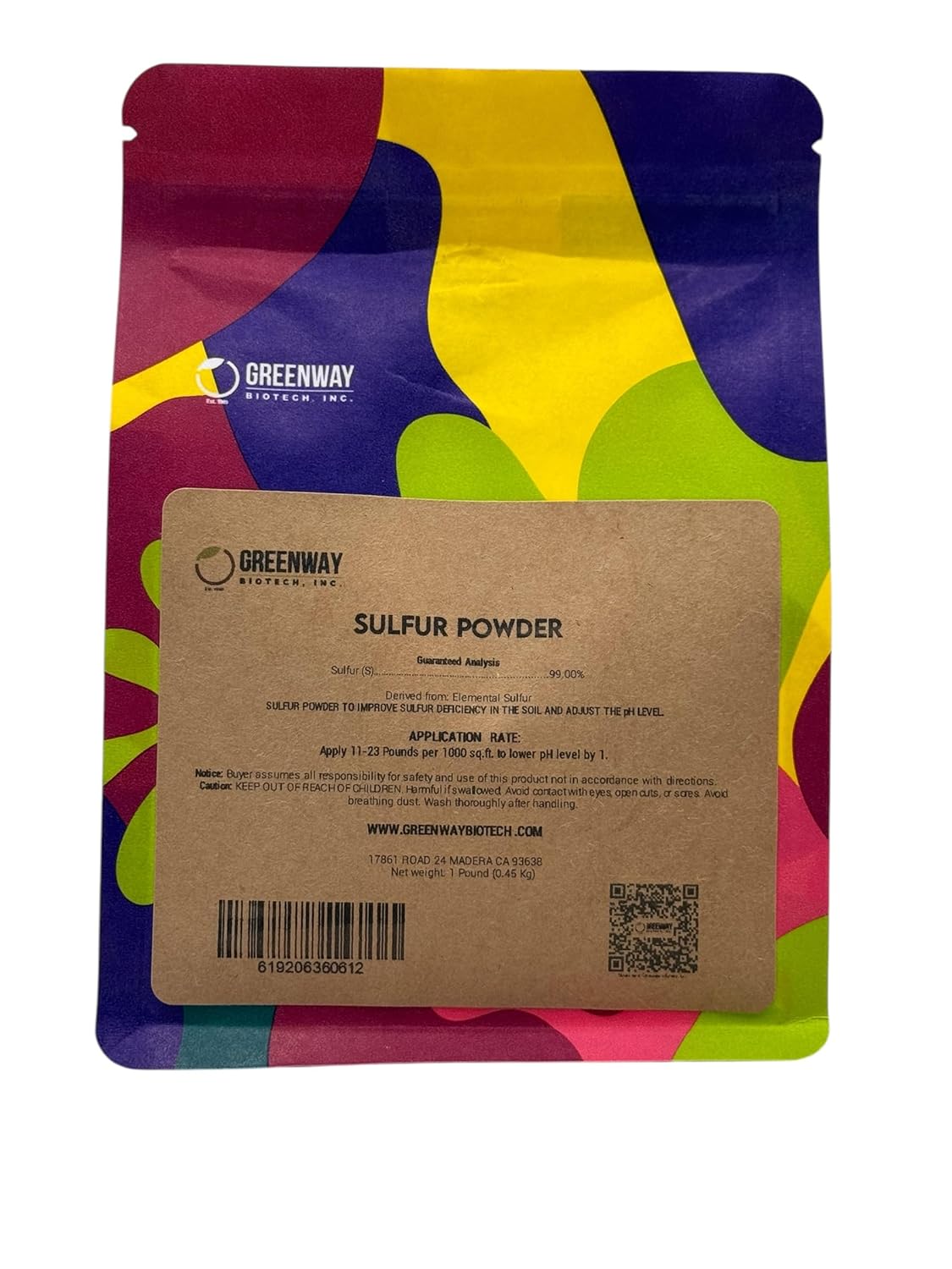 Greenway Biotech, Inc. Organic Sulfur Powder Fertilizer for Plants- Required to Lower pH & Increased Sulfur Deficiencies- Essential Nutrients for Plant Growth with Macronutrients (3 Pounds)