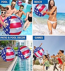 - Enjoy summer party days by the pool, beach or lake with jumbo USA Flag Beach Balls. Add this cool to your collection of summer party decor for pool parties and beach-themed indoor and outdoor decorations. Perfect beach party decorations for your 4th of July party supplies. Use the USA pool balls for swimming pool as pool accessories for kids and fun pool party games for adults. Love to decorate your outdoor party for a beach-inspired theme? Or 4th of July accessories? These USA beach balls inflatable 16 inch size are the perfect match! These red, blue, and white floating pool balls for kids filled with star-shaped confetti will stand out anywhere you take them. They make the perfect inflatable USA blow up balls to make your summer party decorations stand out. The cool design of the Sparkly Confetti USA Flag beach balls 16 inch size will add an American touch to your 4th of July party celebration by the pool or beach. Use these USA flag large blow up beach balls to create fun-filled summer beach party games with your friends or family. These pool floating balls are perfect for playing catch, volleyball, or simply lounging in the water. The USA flag pool beach ball is a heavy-duty ball made of premium PVC vinyl materials. Crafted with UV resistance and tear resistance to protect the inflatable pool ball from color fading and cracking. This 16 inch beach ball is designed with eye-catchy USA flag colors and filled with silver star-shaped confetti inside. These are the perfect USA beach ball for pool party games kids will love to use. Best for kids 3+. Includes 1 POZA USA Flag Confetti Large Beach Ball Pack that comes with 2 inflatable balls for girls and boys, filled with sparkly silver star-shaped confetti featuring the American flag colors. Use an electric air pump with our advanced quick air valve system to easily inflate or deflate the beach balls for kids and adults. Each big inflatable USA blow up ball measures 16x16 inches and includes a repair patch.