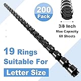 HOUYEE 200 Pack 3/8 Inch Plastic Binding Comb 19 Ring, 60 Sheet Capacity, Letter Size Black Comb Binding Spines