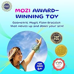 - Magic moves with this alchemist toy! Here's how to describe mozi. Designed in the workshop of Fun in Motion, Mozi is a set of spring-loaded toys that come to life in a gyroscopic swirl of light, colour and movement. To release the energy of mozi, simply place your hand between the rings, raise your arm and release. Mozi will instantly take on a kaleidoscopic shape and begin to move along your arms, from one hand to the other, in a fascinating show of movements. Find your own rhythm, then, by simply touching your fingers or holding the same object, switch Mozi to a friend. It moves best on bare skin and is surprisingly easy to flatten when not in use. To flatten it, simply hold Mozi in your hands and then turn the upper hand counterclockwise. When you are ready to start playing again, pull one of the rings up and watch Mozi take shape. Although it's easy to use, the Mozi keeps hours of fun. Often described as a magical slinky, it is as beautiful as it is fun. It comes in three different colors (iridescent, green and silver) and is made of high quality stainless steel. Recommended for ages 6 to 600, Mozi is suitable for all ages. Try this sensory object at home, on holidays, at parties and festivals; give it to students, grandchildren and teachers; use it on its own or try it with others; but most importantly, have fun.