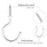 - Multifunction coated hooks, high quality cup hooks. Vinyl coated screw hooks is easy to screw them into ceiling, wall, tree, kitchen and blends seamlessly. Widely used in home and office, ideal for lights, curtains, ropes, chains, mugs, feeders, planters , kitchen towels, and more. Specification: Color: White Meterial: Vinyl and steel Size: 1-1/4 inch Packge include: 12Pcs Vinyl coated cup hooks