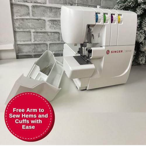 SINGER | S0100 Serger Overlock Machine con kit de accesorios incluido - Capacidad de rosca 2/3/4 - 1300 SPM - Brazo libre, blanco