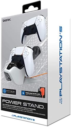 The Bionik Power Stand is a PS5 controller charging dock that allows you to store and fast charge 2 wireless DualSense controllers simultaneously. Neatly store your controllers when not in use with ease while the stand's current optimization feature delivers the fastest charging times to get you back in the game quickly. Backlit charge status indicators allow you to check at a glance.Upgrade your PS5 setup with the Power Stand by Bionik, an American company