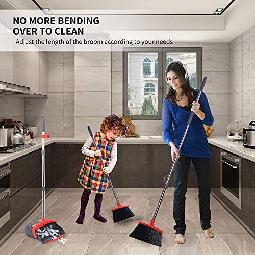 - 4. Reliable Quality with New Materials: This broom dustpan set made from new material, Make this broom and dust pan with handle life longer; micro curve soft rubber lip seamlessly adheres to surface, no dust will swept under the dustpan