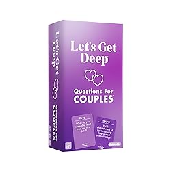 - Let's Get Deep by Relatable is the ultimate couples game for adults that helps take relationships to new heights. Whether you're searching for unique wedding registry gifts, a thoughtful wedding gift, or memorable bridal shower gift , this intimate card game is an ideal choice for couples at any stage of their journey together. Exciting, and engaging, Let's Get Deep offers an easy way to deepen your connections. This versatile 2 player game can also be enjoyed with friends or other couples, making it a fantastic addition to your collection of go-to couples activities. Designed to be both a sexy card game and a tool for meaningful conversation, Let's Get Deep features questions across three levels of intimacy: Ice Breaker, Deep, and Deeper. The new bonus Activity category adds an extra layer of fun. To play, draw 1 Ice Breaker card, 2 Deep cards, and 2 Deeper cards each round. One player reads the card for the other player(s) to answer. If you want couples sexy gift sets or cute wedding gifts for newlyweds that go beyond the ordinary, these conversation cards for couples help romantic partners discover more about each other. Whether you're in a new relationship or need a special happy anniversary gift, this best-selling dating card game offers endless opportunities for connection. One of the best get to know you games for couples, Let's Get Deep encourages open and honest communication that helps partners build stronger foundations of understanding and trust. As players progress through the different levels of questions, conversations become deeper and more meaningful. So, if you're searching for cute love games to strengthen your bond with a special someone, Let's Get Deep is the key. More than just a game, it's an experience that brings couples closer together, one question at a time. Brought to you by Relatable, check out our full collection of relationship games, toys, and gifts for all your wedding gifts, his and hers gifts, and couple stuff needs.