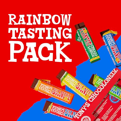 - A RAINBOW OF FLAVORS: Life might not be all chocolate and rainbows, but Tony’s Rainbow Tasting Pack sure is! Packed with 6 classic Tony’s flavors in cheery rainbow packaging, this tasting pack has something for everyone. From the creamy richness of Milk Chocolate to the indulgent sweetness of Milk Caramel Sea Salt, the chewy goodness of Milk Chocolate Nougat, and the bold richness of Dark Almond Sea Salt and 70% Dark Chocolate—this pack offers a bite of everything!