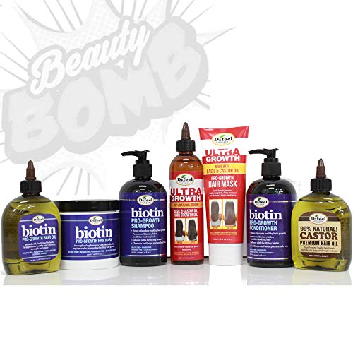 - Difeel Pro-Growth Biotin Hair Oil 7.78oz, Ultra Growth Basil & Castors Pro Growth Hair Oil 8oz, Difeel Premium Natural Hair Oil with Castor Oil 8oz.