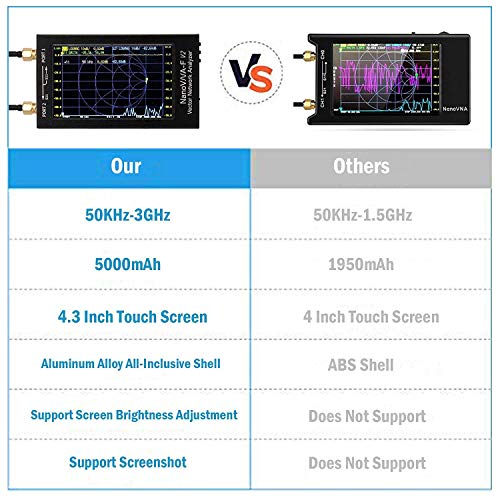 - 【5000mAh Battery and Longer Standby Time】The antenna analyzer's 5000mAh large-capacity battery has longer standby time, up to 7 hours. When not used as a measuring instrument, it can be used as a power pack to charge your mobile phone.