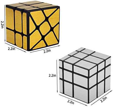 Mirror Speed Cube Set Magic Cube 2Pack Dysmorphism 3x3x3 Mirror Golden Wheel Cube and Mirror Silver Cube Twist Speed Cube Bundle Puzzle Games Toy for Children and Adults by AHYUAN (Classic Edition)
